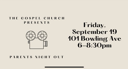 Kids are invited to come hang out at The Gospel Church while their parents enjoy a night out! We will have snacks, games, crafts, and a movie. Please feed your children before hand. Let us provide a fun and safe environment for your children while you use the night however you like! This is for our children 3-12 years old.