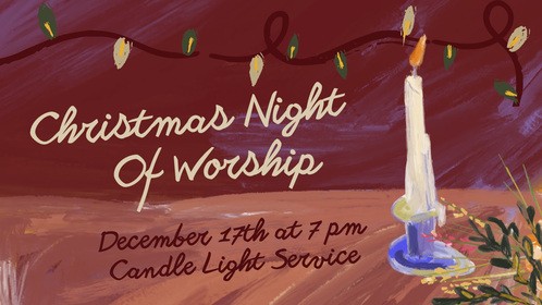Please join us for a night of worship! Since we do not host a traditional Christmas Eve service this night of worship is our opportunity to sing Christmas hymns, light candles, and remember the coming of our Savior. We hope you can make time to be with us that evening.